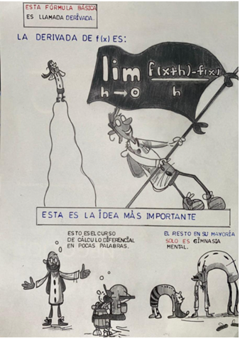 Dentro de los temas y conceptos sobre el estudio de la derivada y la Integral, han sido usados, alguna vez, en tono humorístico. Existen bromas sobre los matemáticos y sus manías, relativos a problemas ingeniosos, demostraciones cómicas, dobles sentidos,…Aquí presentamos una serie de historietas que reflejan situaciones en las que se pone de manifiesto competencia o incompetencia matemática, es decir: 1) pensar y razonar, 2) argumentar y justificar, 3) comunicar, 4) modelizar, 5) plantear y resolver problemas, 6) representar, 7) utilizar lenguaje y símbolos, fórmulas y operaciones, y 8) emplear soportes y herramientas tecnológicas.