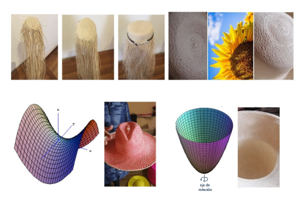 Otro ejemplo es la elaboración de sombreros de paja toquilla en donde se identifican algunos contextos matemáticos: álgebra, geometría y cálculo, con aplicación de operaciones elementales como el conteo y otros conceptos más avanzadas como la proporción áurea, las funciones de varias variables y la modelación de funciones, inclusive.