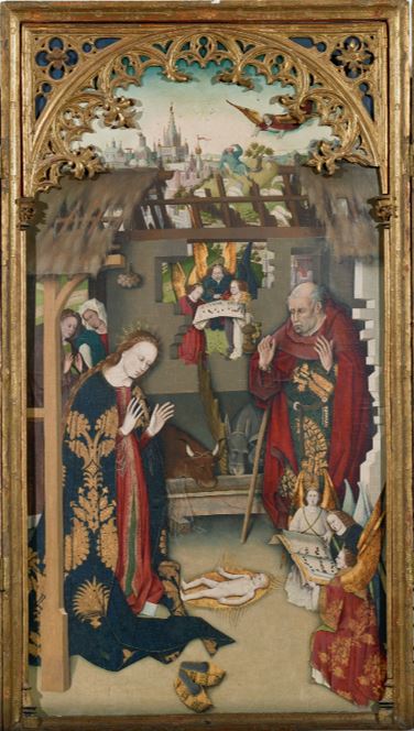 Maestro del tríptico del Zarzoso (Ca. 1450). “Tríptico del Nacimiento de Jesús” [Pintura], Detalle de la tabla de la Natividad. Museo del Prado, óleo sobre tabla.