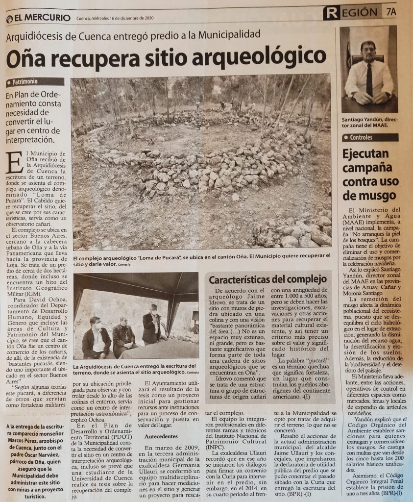 De esta manera, en la hemeroteca de la Casa de la Cultura Núcleo del Azuay se identificaron alrededor de 1620 notas referidas a temas de patrimonio cultural en la región sur del Ecuador (Cañar, Azuay y Morona Santiago). Los contenidos en torno al patrimonio cultural los podemos evidenciar en las diferentes secciones de El Mercurio como: Cuenca, Actualidad, Interculturalidad, Cultura y Región, Editorial y Opinión. De esta manera el relevamiento de datos en hemeroteca constituye una estrategia fundamental en la investigación, pues brinda un amplio panorama de análisis a través de la prensa escrita.