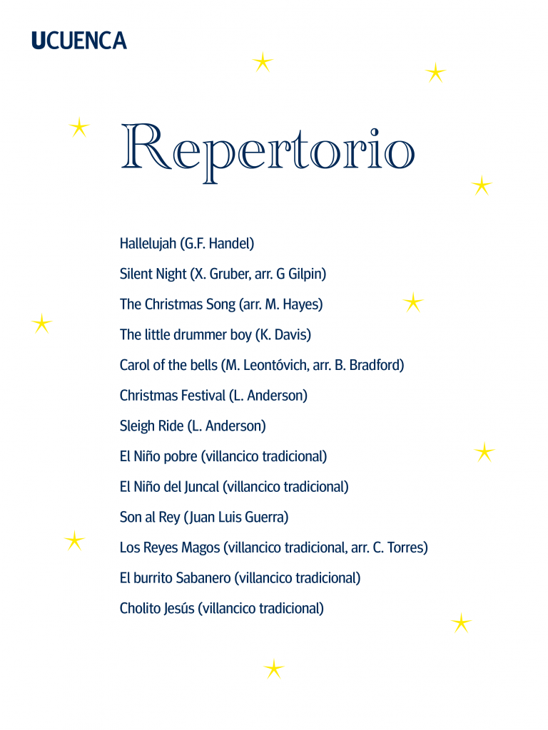 La Orquesta Sinfónica y el Coro Polifónico de la Universidad de Cuenca, junto a la Orquesta Juvenil del Conservatorio, presentan una gala musical que celebra la magia de la Navidad con un repertorio universal y tradicional. Te invitamos a compartir esta experiencia artística que une voces, generaciones y memorias.