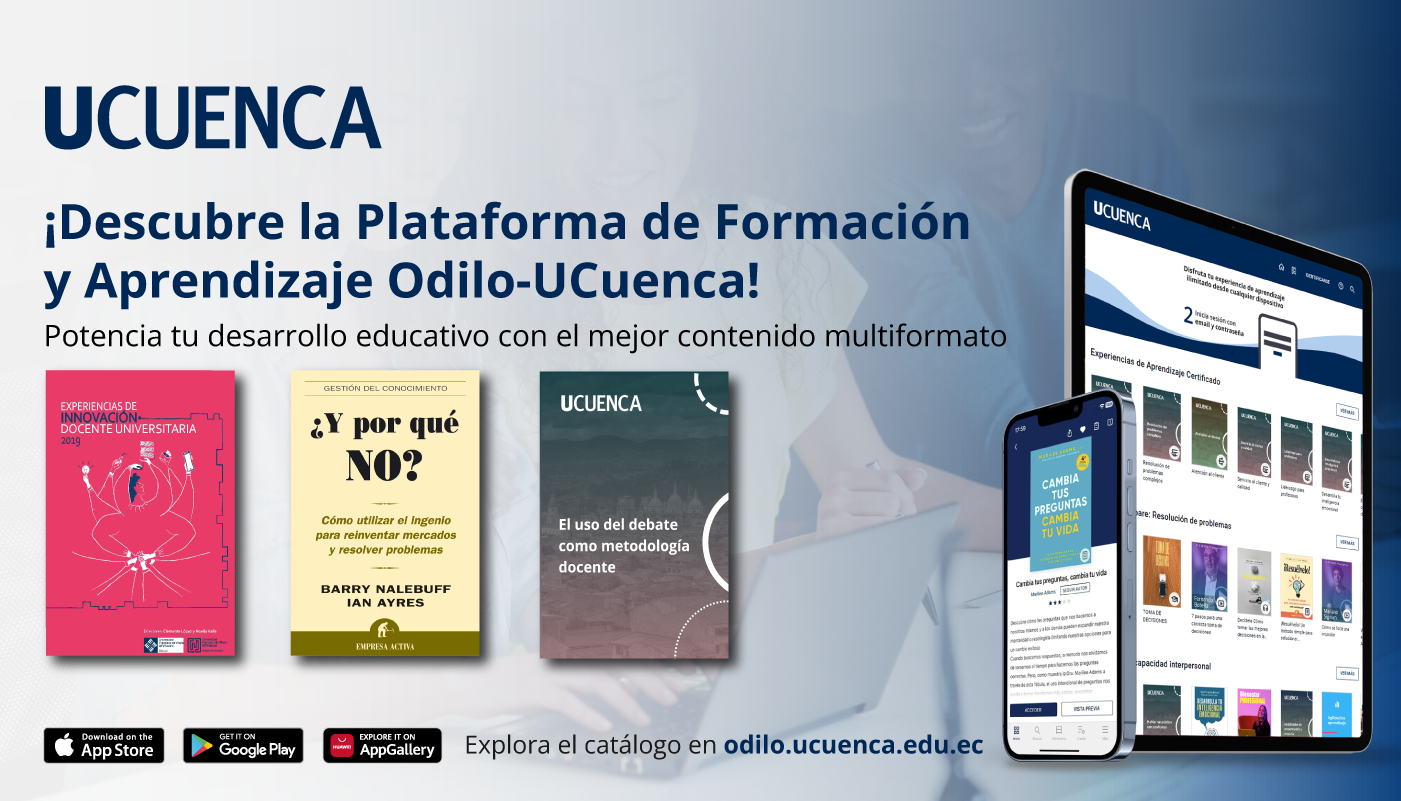 - Lanzamiento de la plataforma ODILO – UCuenca: Una herramienta de formación y aprendizaje diseñada para fortalecer las competencias docentes a través de cursos especializados y recursos multiformato. Durante el evento, los asistentes tendrán la oportunidad de conocer en detalle sus beneficios y recibir la licencia para acceder a la plataforma.