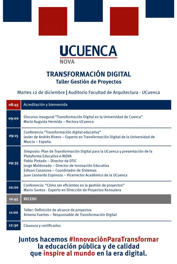 En este evento, se contará con la participación de expositores internaciones de Transformación Digital y Proyectos, adicionalmente, se realizará el lanzamiento de la nueva Plataforma e-Nova y finalmente, se llevará a cabo un taller enfocado en proyectos efectivos.