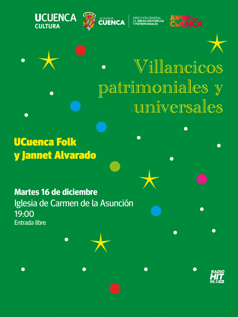 En el marco del Plan de Salvaguardia del Pase del Niño Viajero, te invitamos, junto con la Dirección de Áreas Históricas y Patrimoniales a un concierto que une historia, tradición y memoria sonora: “Villancicos Patrimoniales y Universales”, interpretado por nuestros músicos de UCuenca Folk y la compositora Janneth Alvarado.
