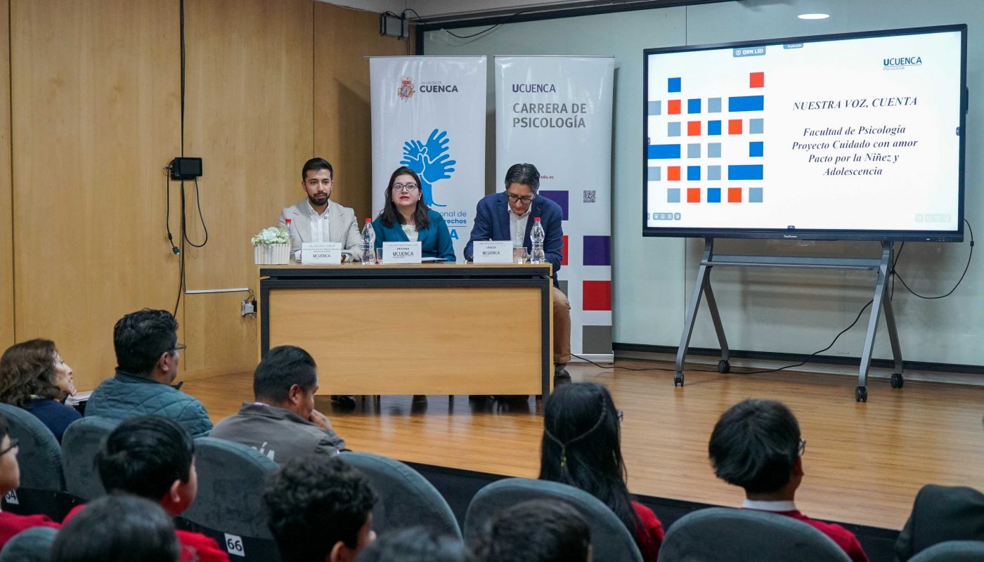 La Facultad de Psicología de la Universidad de Cuenca organizó el conversatorio “Avances y desafíos de la Convención de los Derechos del Niño”, un evento realizado en colaboración con UNICEF, el Pacto por la Niñez y el Consejo Cantonal de Protección de Derechos de Cuenca. Este espacio reunió a representantes de diversas instituciones para analizar los logros alcanzados en los últimos 35 años, las acciones actuales y los retos pendientes en la garantía de los derechos de la niñez.