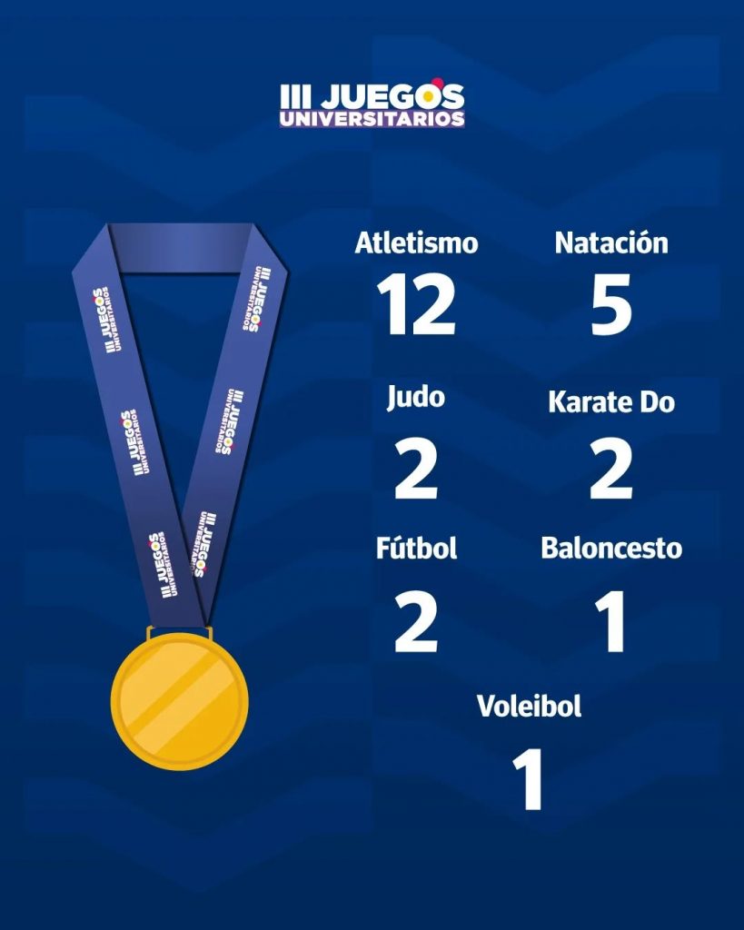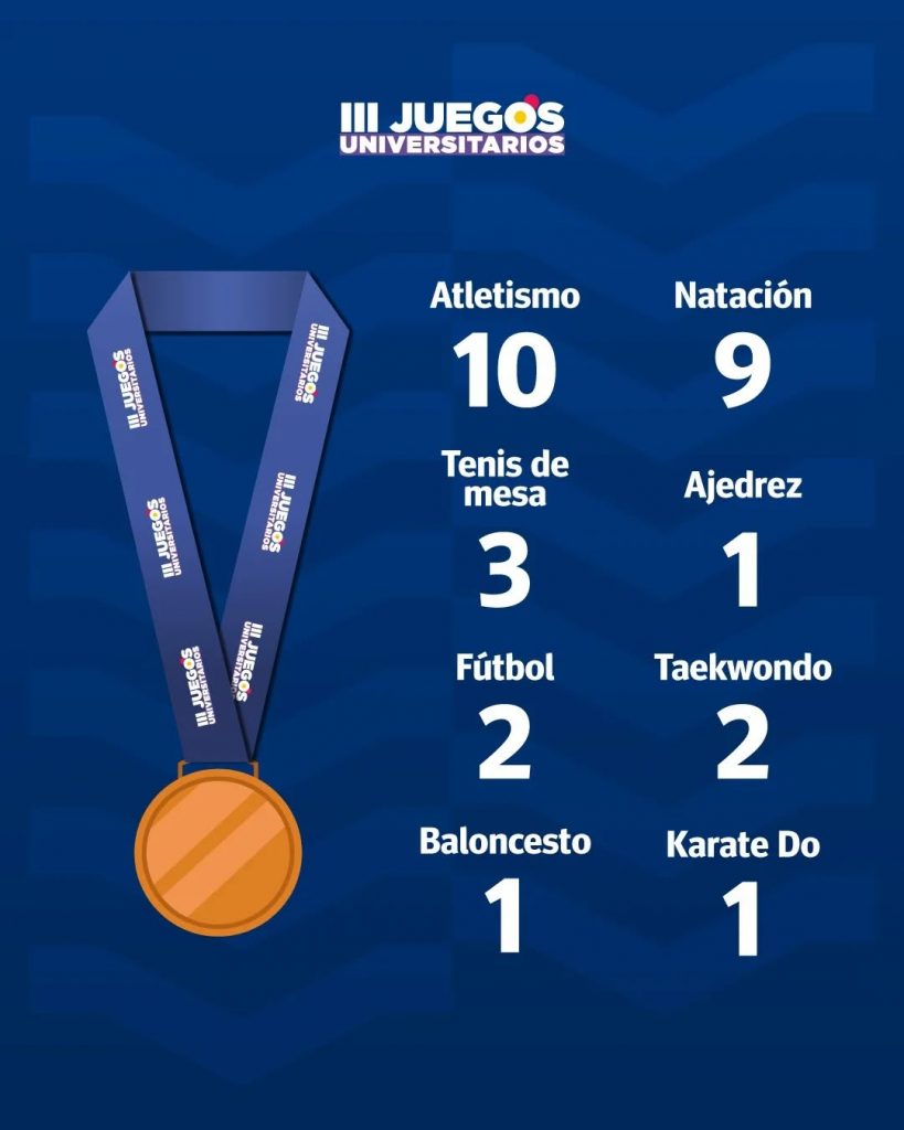 Con un total de 70 medallas, 25 de oro, 16 de plata y 29 de bronce, la Universidad de Cuenca se coronó campeona general de los III Juegos Nacionales Universitarios, disputados del 17 al 28 de noviembre de 2025.
