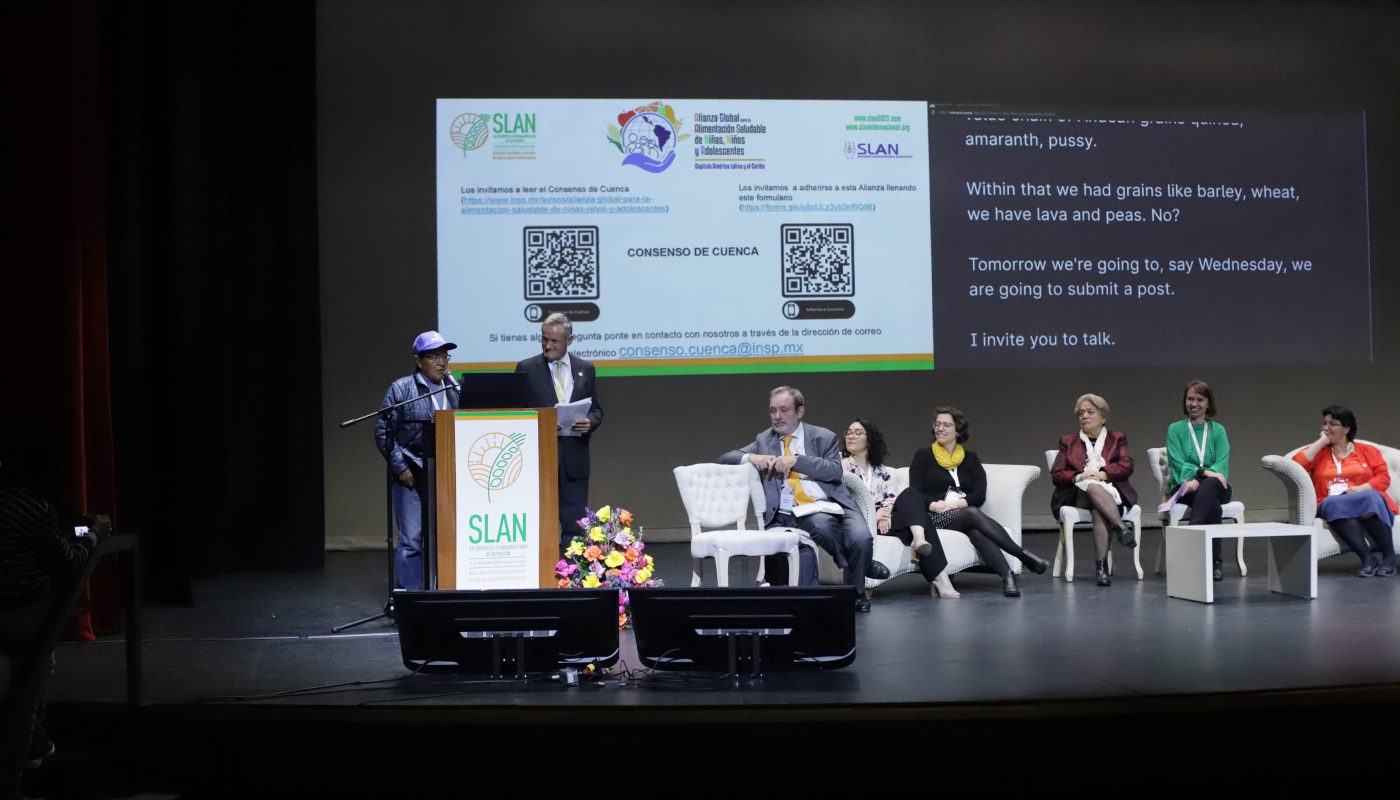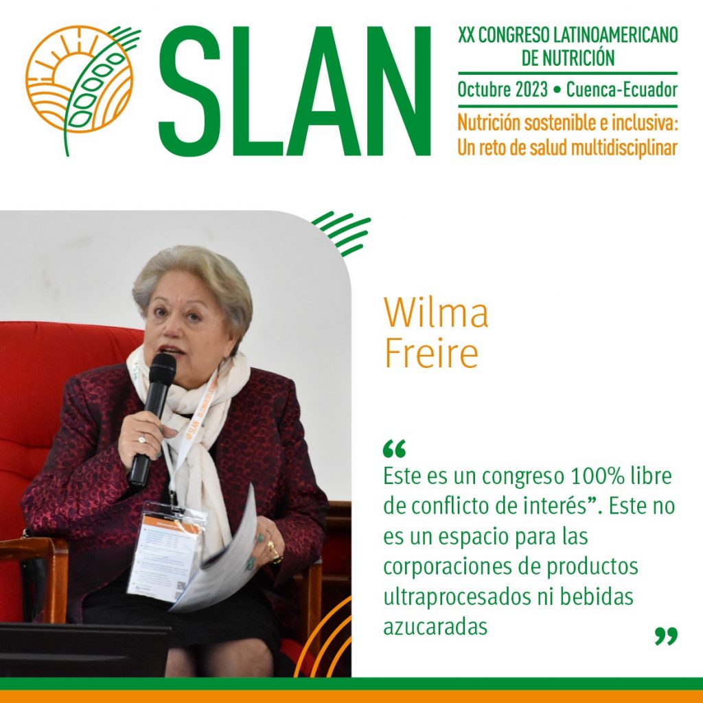 La secretaria de la Sociedad Latinoamericana de Nutrición y representante de la UCuenca, Angélica Ochoa, reconoció a las instituciones y miembros de la SLAN por el compromiso al haber participado en este “hermoso” evento. Asimismo, ratificó su postura frente al rechazo a las industrias de alimentos ultraprocesados y farmacéuticas.