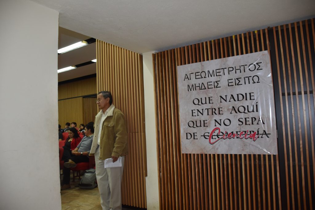 El evento se inauguró con las intervenciones del coordinador de investigación de la Facultad, Carlos Torres Inga, quien destacó el sentido social de la ciencia al señalar que “la ciencia es para servir, por ello estamos aquí, listos para que nuestras investigaciones sean en beneficio de otros”. En su participación recordó también la frase atribuida a Platón “Que nadie entre aquí si no sabe de geometría”, adaptándola al contexto académico actual al reemplazar el término geometría por ciencia, como una invitación permanente al rigor, al conocimiento y a la reflexión crítica. Asimismo, agradeció el respaldo de los auspiciantes que hicieron posible el desarrollo de las jornadas.
