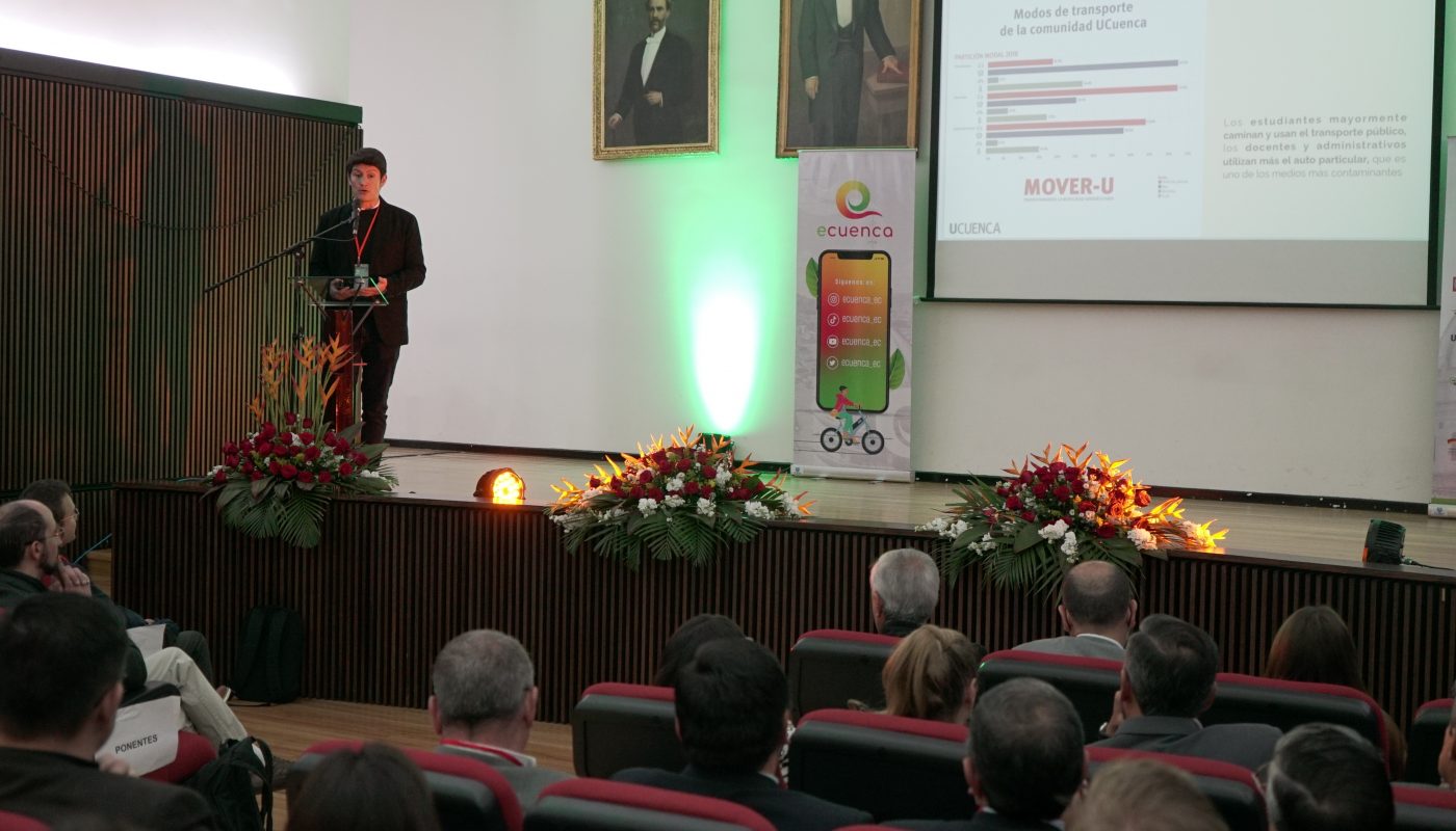 El director de Proyectos Estratégicos de la UCuenca, Juan Pablo Carvallo, compartió las experiencias de Mover U, una iniciativa institucional enfocada en promover el cambio de la movilidad, del transporte de la comunidad universitaria, migrando hacia medios más sustentables y alternativos como la movilidad eléctrica.
