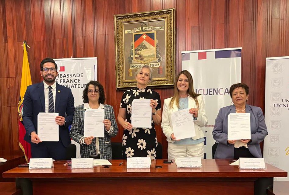 Se llevó a cabo la firma del convenio interinstitucional para la ejecución del proyecto ganador de los Fondos Equipo Francia QHALI KAY, titulado «Salud Sexual y Reproductiva en las Universidades: Cuidados Integrales al Servicio de la Promoción de la Igualdad de Género». Este proyecto es coordinado entre la Universidad de Cuenca, la Universidad Técnica de Manabí, la Corporación Kimirina y cuenta con el apoyo del Gobierno Francés, tiene como objetivo primordial fortalecer el acceso y la calidad de los servicios de salud sexual y reproductiva especializados, dirigidos a mujeres y hombres de 10 a 24 años en las comunidades de Manabí y Azuay.