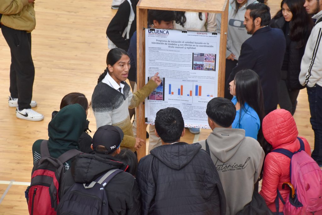 En esta edición participaron estudiantes de octavo ciclo presentando sus trabajos de titulación en formato de pósteres científicos, acompañados por docentes evaluadores y observadores.