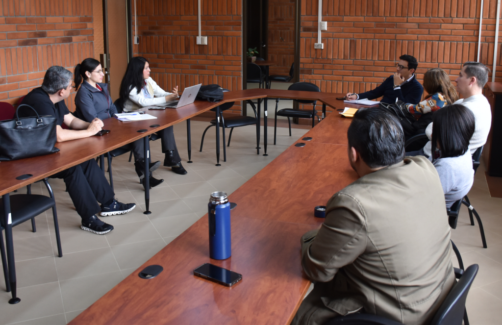 La reunión fue presidida por la Vicerrectora de Investigación e Innovación, Monserrath Jerves, quien dio la bienvenida a los presentes y presentó a su equipo de apoyo, incluyendo a Karina Quinde, Especialista de Proyectos de Investigación, y a Angélica Rivera, Analista Administrativa.