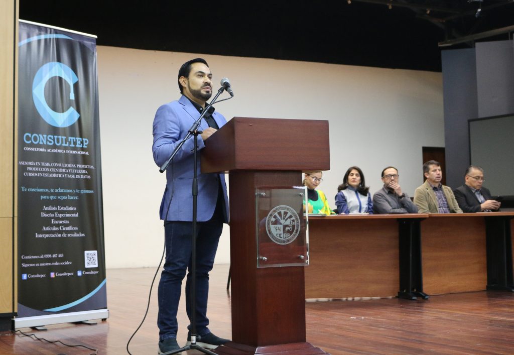 Carlos Torres, coordinador de Investigación de la Facultad de Ciencias Agropecuarias, durante su discurso de apertura en las XVIII Jornadas de Investigación Formativa, destacó la importancia de mantener este tipo de espacios que visibilizan el trabajo investigativo de los estudiantes que están próximos a culminar sus carreras. Agradeció a todas las personas que hacen posible estas jornadas, valorando su compromiso con la investigación y su disposición para compartir conocimientos en esta prestigiosa casa de estudios.