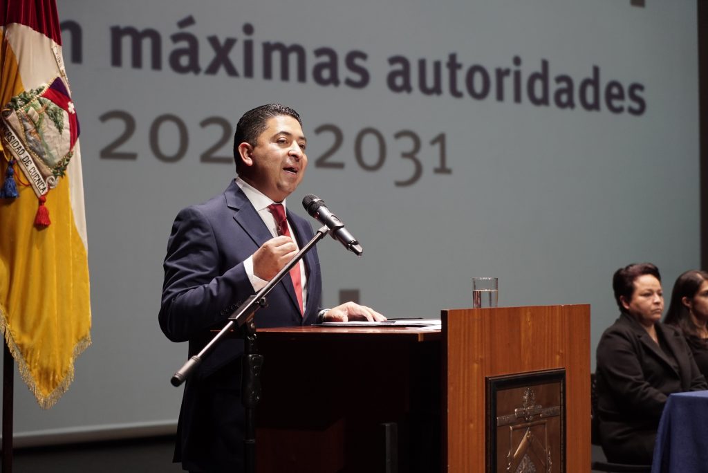 Durante su intervención, el rector Rodrigo Mendieta señaló que la educación es la herramienta más poderosa de transformación social y que la universidad cumple el rol de brújula de los pueblos. Reafirmó que investigar, enseñar y vincular no son tareas aisladas, sino funciones sustantivas que deben articularse para poner el conocimiento al servicio de la comunidad, con ciencia y conciencia.