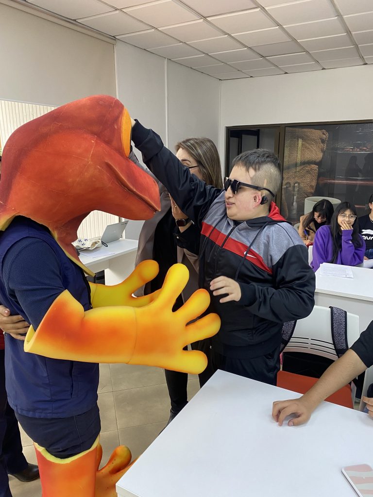 Cutín Rojo interactuando con los estudiantes.