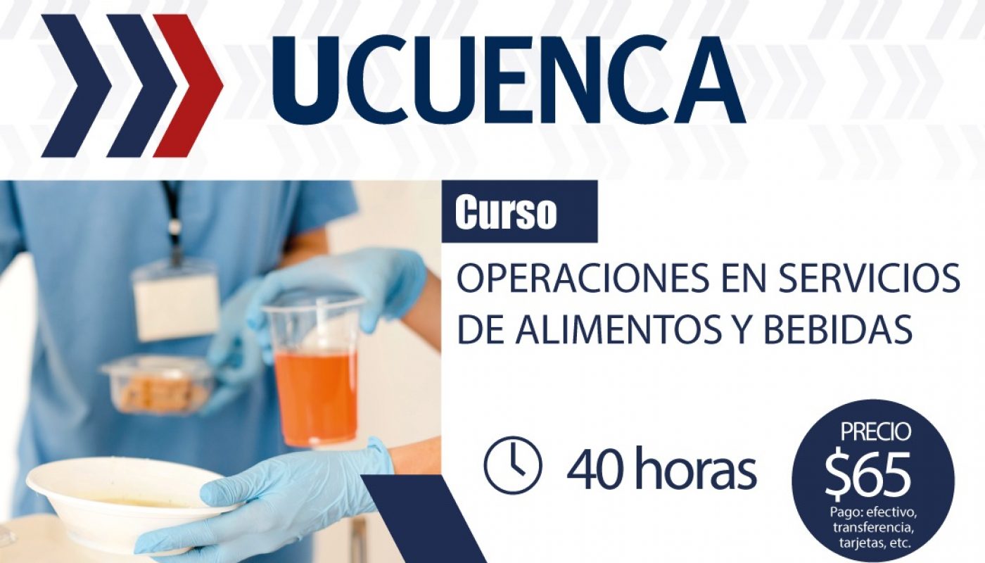 El curso está dirigido a personas que estén interesadas en fortalecer o adquirir conocimientos relativos a las operaciones en servicio de alimentos y bebidas. Tiene una duración de 40 horas, se desarrollará de lunes a viernes de 08:00 a 10:00. Inicia el 23 de octubre y concluirá el 23 de noviembre. Tiene un costo de 65 dólares.