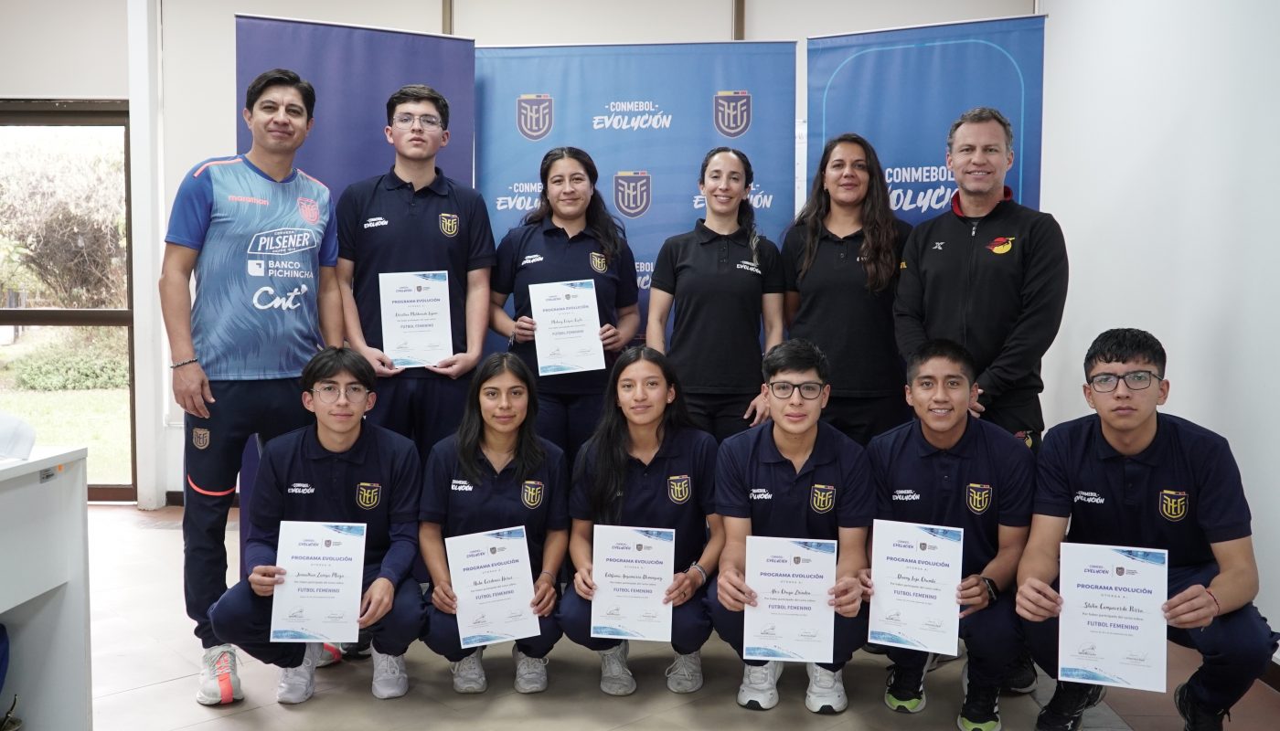 Del 23 al 25 de septiembre, ocho estudiantes de la carrera de Pedagogía de la Actividad Física y Deporte de la Universidad de Cuenca, junto al director y asistente técnico de la selección de fútbol de la institución, participaron en el Seminario para Entrenadores de Fútbol Femenino, organizado por la Federación Ecuatoriana de Fútbol (FEF) con el apoyo de expositores de la Confederación Sudamericana de Fútbol (CONMEBOL).