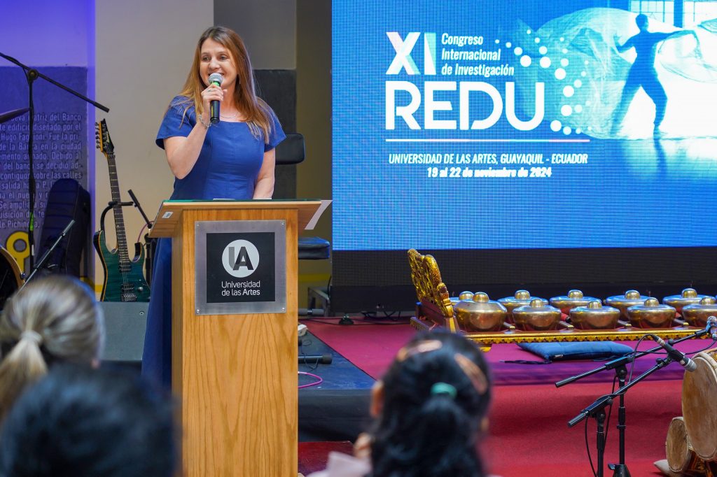 Durante la inauguración, la presidenta de la REDU y rectora de la Universidad de Cuenca, María Augusta Hermida, destacó el papel fundamental de la educación superior como pilar para el desarrollo cultural y social del Ecuador. En su intervención, señaló que las artes y la educación se convierten en una luz de esperanza y transformación para nuestra sociedad. Invito a todos los investigadores, artistas, gestores culturales y académicos a seguir apostando por el diálogo interdisciplinario, resaltando que es la oportunidad de transformar las aulas y los laboratorios en espacios de impacto para nuestras comunidades.