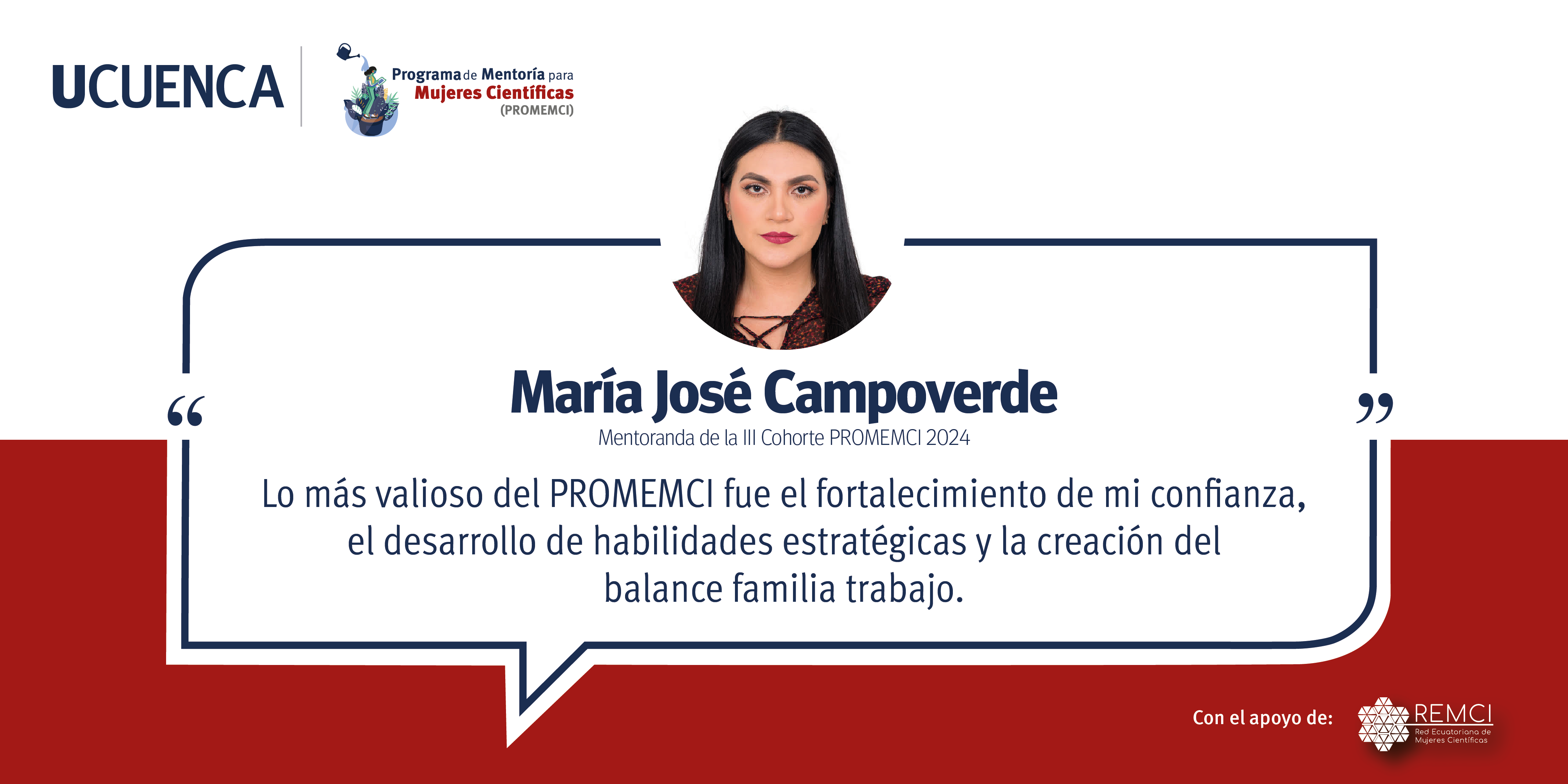 A partir de 2024, la Universidad de Cuenca, a través del Vicerrectorado de Investigación e Innovación, asumió el liderazgo en la consolidación de PROMEMCI. Esta nueva etapa cuenta con el respaldo de la Red Ecuatoriana de Mujeres Científicas (REMCI), consolidando el compromiso institucional con la equidad de género en la ciencia y la formación de nuevas generaciones de científicas en Ecuador.