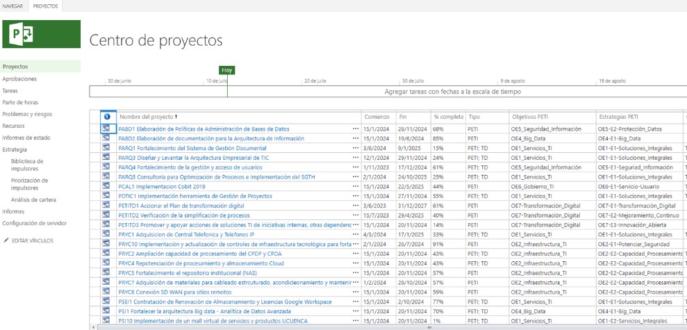 En el Comité Estratégico de Tecnologías de la Información (CETI) de enero 2025, se presenta los avances del Plan Transformación Digital 2024-2027 y el Plan Estratégico de Tecnologías de la Información (PETI) de la Universidad de Cuenca, resaltando logros clave en los ejes misionales: académico, investigación/innovación, vinculación, gestión administrativa, cimentado por la optimización procesos, gobernanza, infraestructura tecnológica, cultura digital, seguridad de la información, para proveer más y mejores servicios a la comunidad universitaria.